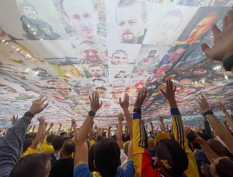 Зображення Героя України згенерував штучний інтелект із фотографій 182 полеглих українських захисників, які в цивільному житті були фанатами футболу. Під ним був підпис «Мир має ціну»