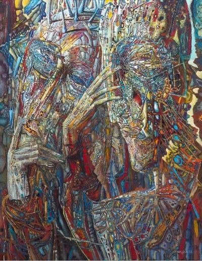 «Дві паралелі» із серії «Голос моєї душі» належить до етапу, коли Марчук зосереджується на філософських і психологічних вимірах живопису. У цій роботі художник розгортає один зі своїх ключових мотивів – співіснування двох світів, станів або внутрішніх реальностей, які рухаються поруч, але не перетинаються. Картина побудована на складній багатошаровій фактурі, де мазки ніби нашаровуються один на одного, створюючи відчуття напруженої, майже живої поверхні», – йдеться у матеріалі.