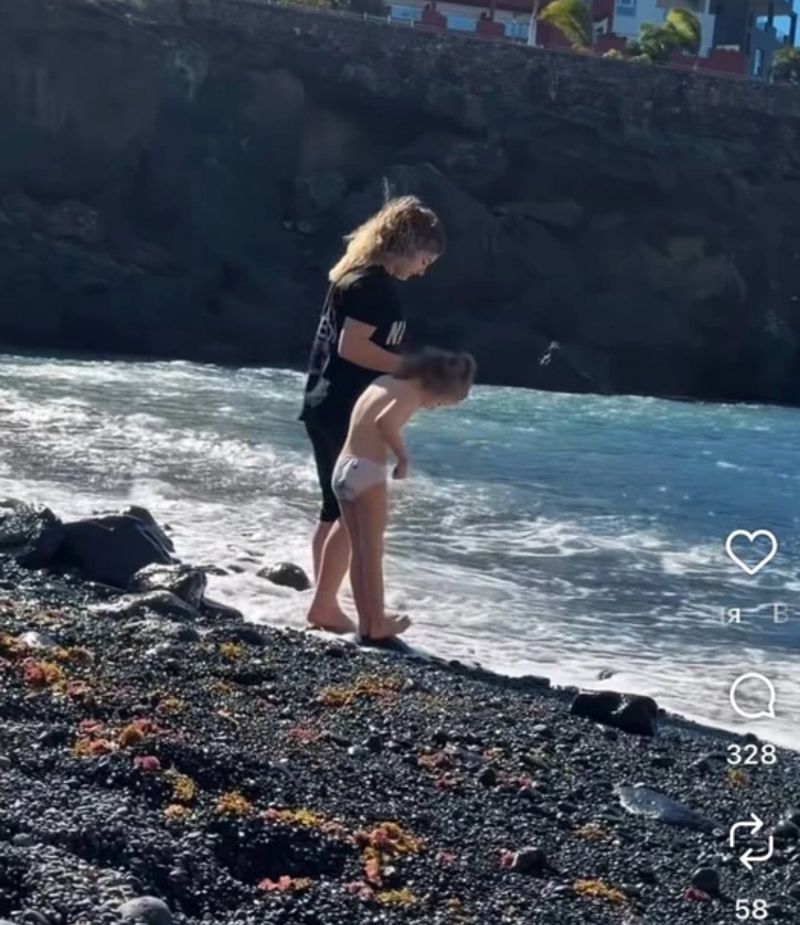 В Istagram зірка показала, як вони бавилися на дикому кам’яному пляжі Тенерифе, гуляли вулицями та розважалися на дитячих майданчиках.