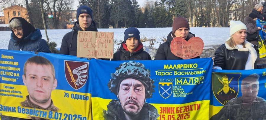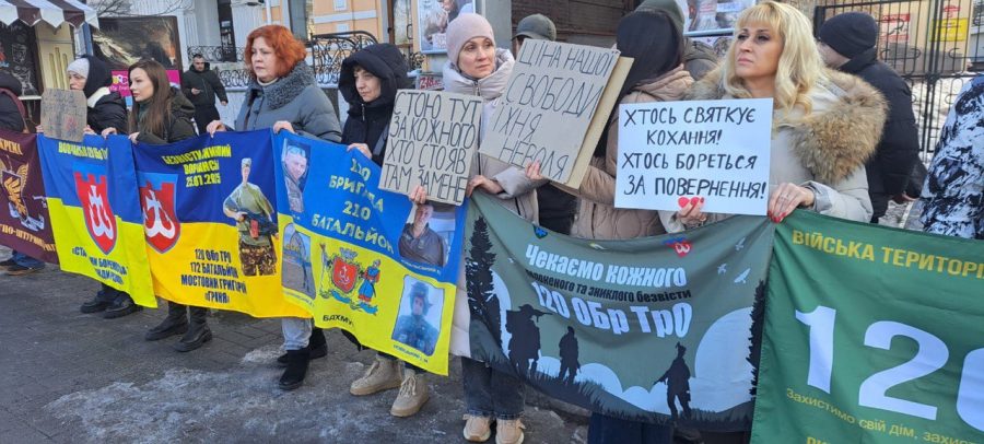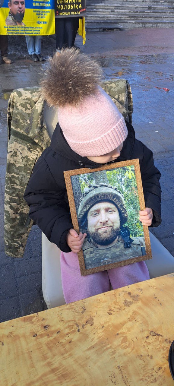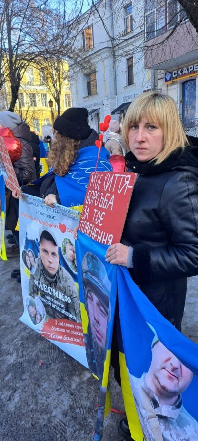Багато хто із дружин, доньок та сестер бійців тримали символічні валентинки із портретами військовослужбовців.