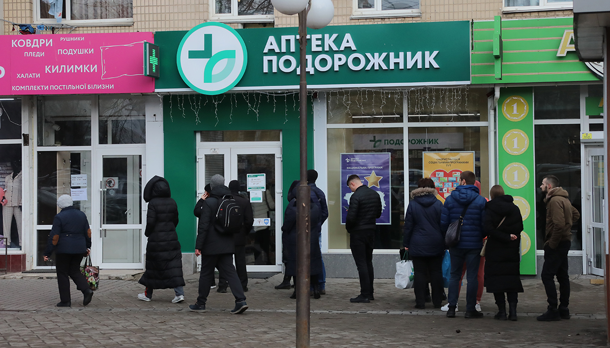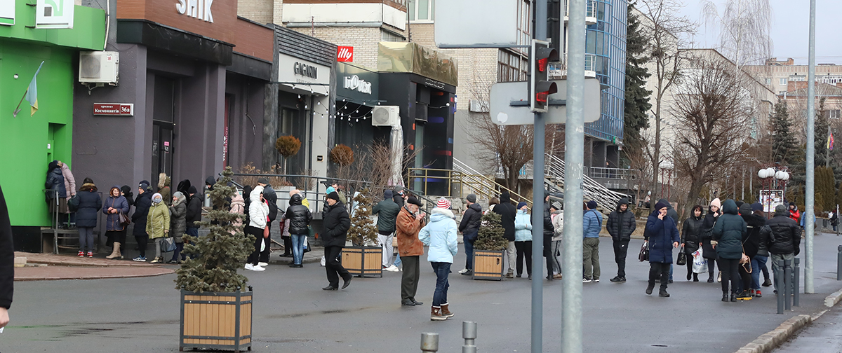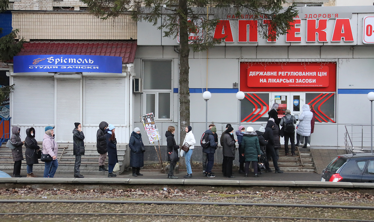 В аптеках, магазинах миттєво створились черги за ліками, за необхідними продуктами – хлібом, борошном, цукром, сіллю, за свічками і сірниками.