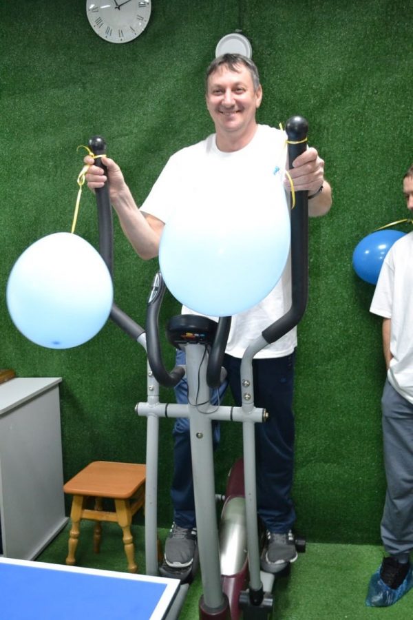 Практично, усе вони зробили своїми руками. Ми лише надали дозвіл на використання кімнати у підвальному приміщенні, яка досі не використовувалась. Навіть обладнання, тренажери працівники Вінницької філії придбали власним коштом. Хтось приніс гантелі, хтось обручі, шахи, боксерську грушу. Щось придбали у складчину.