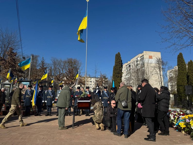 Попрощатися з колегою та вшанувати памʼять Героя прийшов командир 7 Бригади тактичної авіації полковник Євген Булацик, Герой України, командування ПС ЗСУ