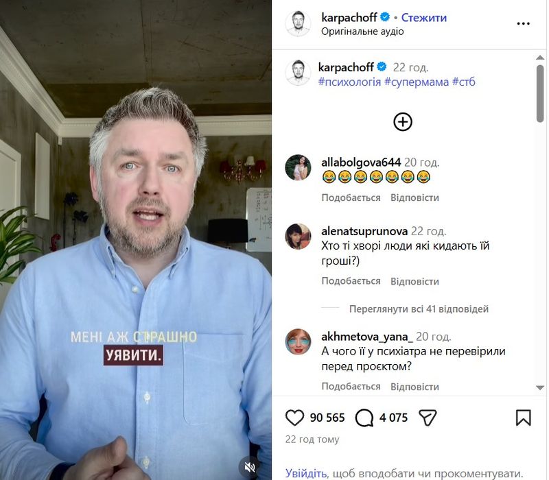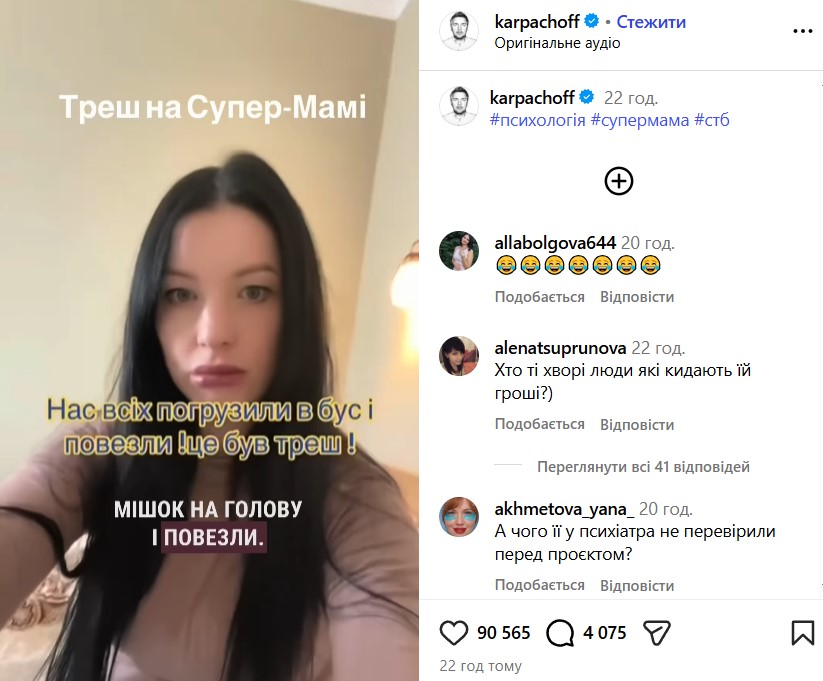 Коментуючи ситуацію, Дмитро Карпачов зазначив: «Весь цей треш-контент створений для того, аби зібрати гроші — нібито, щоб ви могли побачити мамів, що б це не означало. Але пані Діана не бере і не брала участі у проєкті Супермама. Тож яких мамів вона вам покаже — мені навіть страшно уявити. Найбільше мене лякає те, що люди вірять у цю маячню, розчаровуються в мені та переводять свої гроші шахраям».