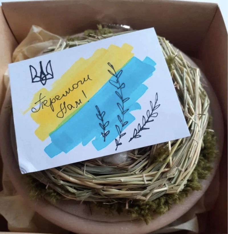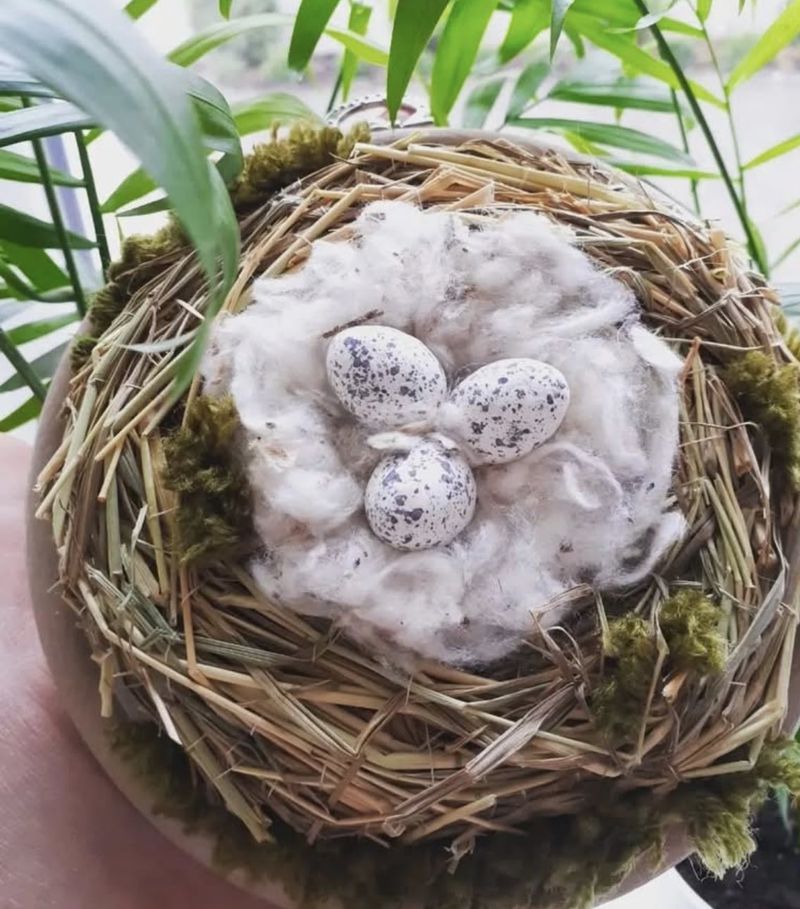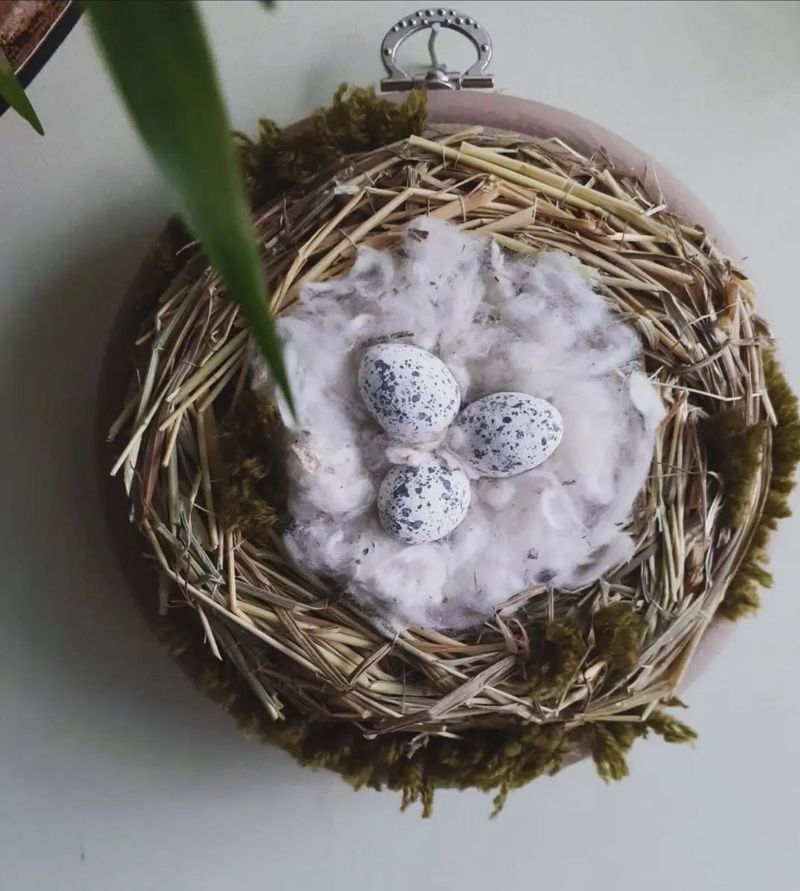 Ця робота — маленький світ життя: затишне гніздечко з сіна, м’яке як хмаринка, яєчка — як символ зародження, надії та нового початку.