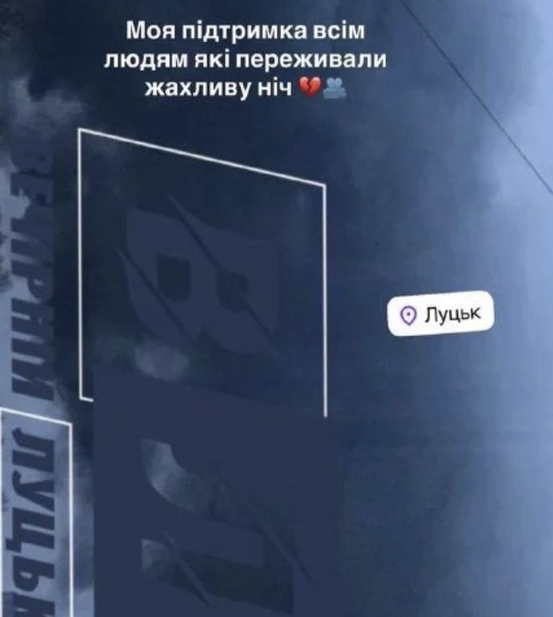 Зірка в Instagram розповіла, що під час ударів у її рідному місті перебували батьки. За словами Лесі, вона не знаходила собі місця і всю ніч переживала за близьких. Вранці телеведуча опублікувала фото наслідків атаки, зокрема з Хмельниччини та Луцька, і висловила підтримку постраждалим.