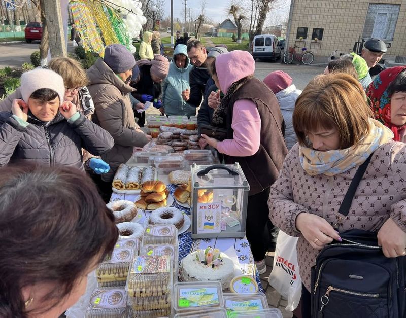 Після останніх акордів мелодії Гімну України голова громади Катерина Романенко подякувала кожному захиснику, котрий боронить нашу землю від московського агресора, і оголосила старт благодійному ярмарку.