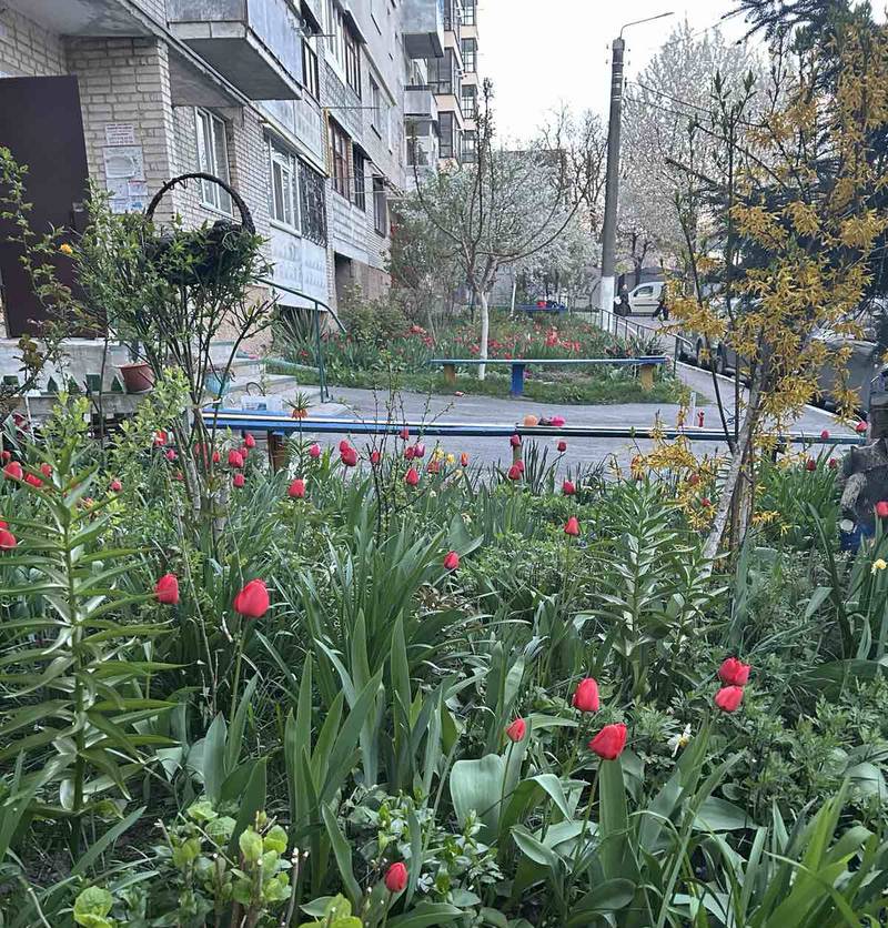 Вінниця, вул. Майбороди. Все квітує, а люди радіють! Діти граються, бігають і дихають цими первоцвітами.