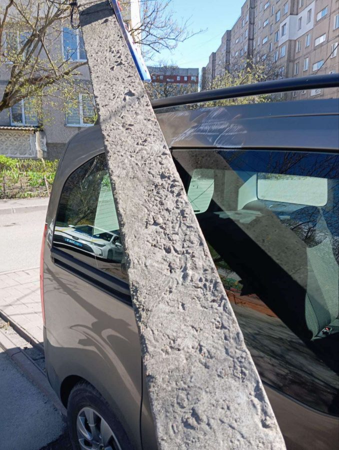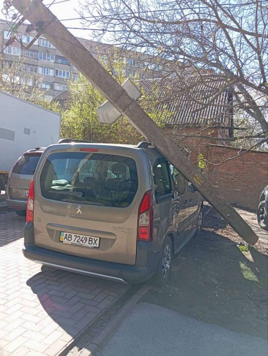 В районі ринку Урожай вітер повалив старе дерево на лінію електропередач. В результаті стовп упав на припарковану у дворі автіаку.