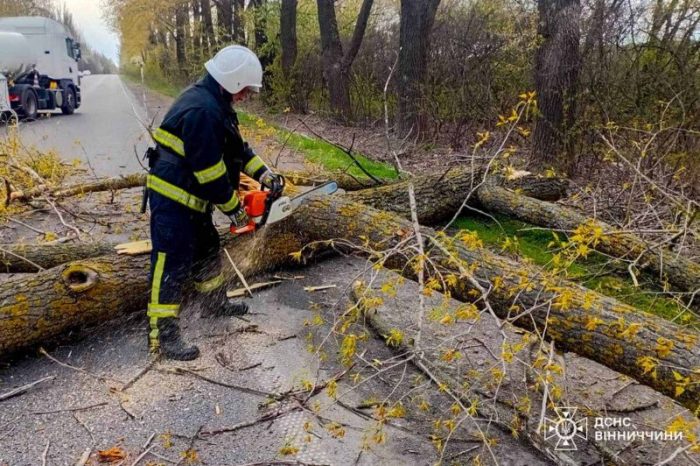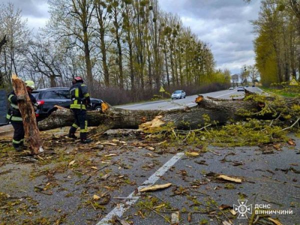 Метеорологи попереджають, що пік негоди ще не пройдено. За даними синоптиків, у найближчу годину та до кінця доби 26 квітня пориви вітру на Вінниччині посилюватимуться до 25 м/с.