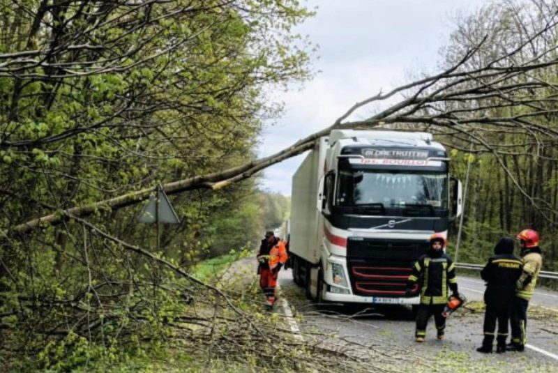 «Дерево впало миттєво, перегородивши майже всю смугу. Рух транспорту зараз вкрай ускладнений, водії намагаються об’їжджати перешкоди узбіччям», — зазначають очевидці.
