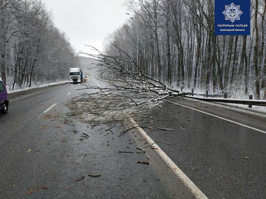 Зокрема на вулиці Андрія Первозванного у Вінниці дерево пошкодило автомобіль, а на об’їзному шосе дерево прало на трасу і перегороджувало рух транспорту. На щастя, ніхто не постраждав.