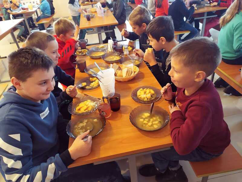 А не сподобатися вони не можуть, бо про те, щоб дітям було смачно, дбає батьківський комітет школи. Так, саме батьки підбирають і складають меню для дитячих обідів. Більше того, постійно удосконалюють і доповнюють меню стравами від Євгена Клопотенка, з його збірника рецептів для шкільних їдалень. Та й кухарі школи виявляють свою творчість, зокрема, випікають хліб.
