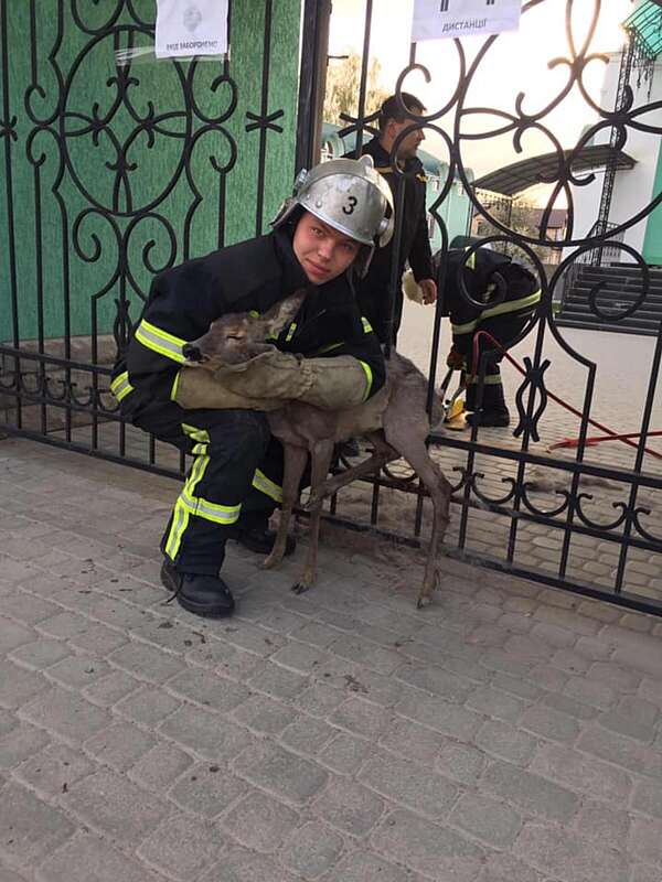 «Подивіться, кого суботнім ранком, визволили наші рятувальники! Це дитинча косулі.