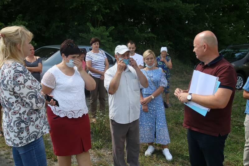 Як бути людям, вирішували представники Державної екологічої інспекції, Держспоживслужби, орендар та представнки селищної ради на чолі із селищним головою – Ковіньком О.Г. Саме, його громада звинувачує у своїх екопроблемах, мовляв, незаконно віддав землю в оренду і не займався утилізацією отрути.